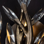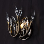 The Chalet Wall Sconce presents a romantic twist on traditional antlers, meticulously crafted from robust steel with an airy, open design. Its layered structure and interwoven rings creatively echo the essence of a classic antler chandelier, enhanced with shimmering crystal points. Finished in a Dark Pearlized Antique Brass with subtle gold undertones, this collection seamlessly complements both modern lodge settings and contemporary spaces.