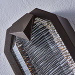 The Carato diamond-cut crystal outdoor wall sconce with cast brass jewelry clips creates a modern style with sparkle for the outdoors. Featuring horizontal cuts on 3 sides allowing the crystal to magnify the cuts and refract light on all the cut surfaces. This cut allows for an even glow around the entire crystal. Finished in a Fluorocarbon Bronze that will withstand the harshest of environments. This wall sconce is suitable for both indoor and outdoor use.