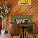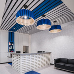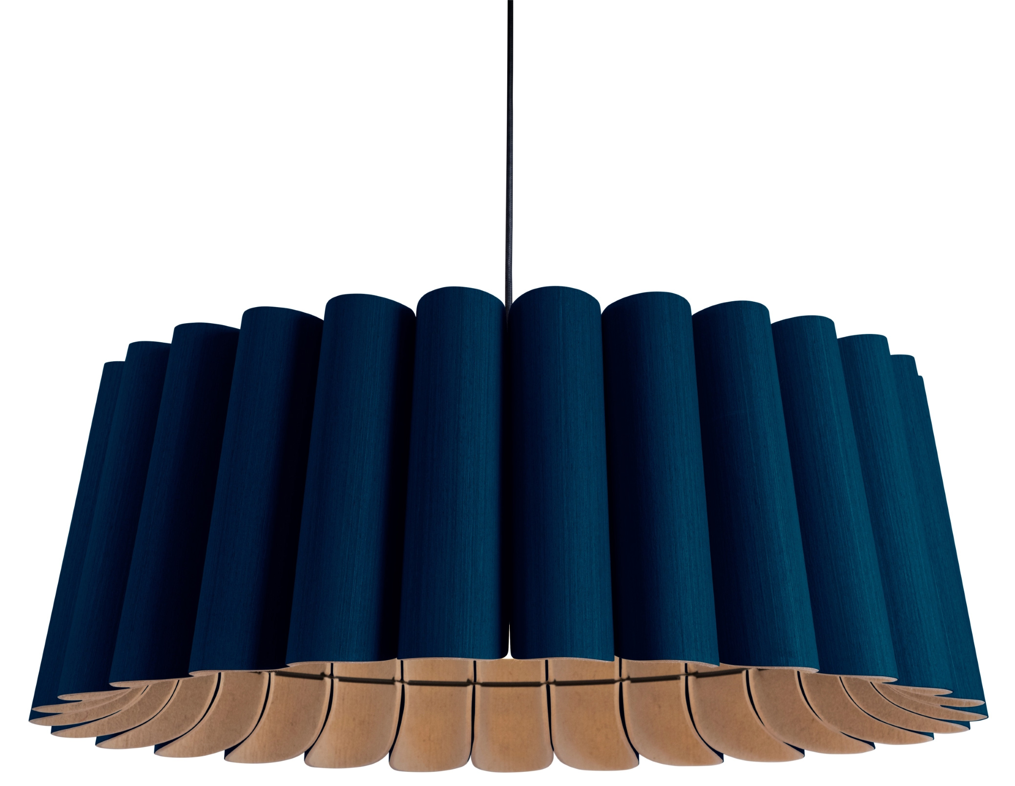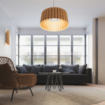 The Renata Acoustic Pendant is a sculptural lighting piece that enhances your interior with both beauty and function. Crafted from curved wood veneer segments joined around a central frame, it casts warm, organic shadows throughout the room.