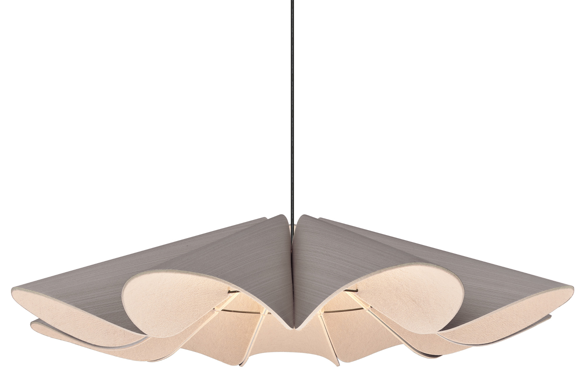 The Delfina Acoustic Pendant is a sculptural lighting piece that enhances your interior with both beauty and function. Crafted from curved wood veneer segments joined around a central frame, it casts warm, organic shadows throughout the room.is a sculptural lighting piece that enhances your interior with both beauty and function. Crafted from curved wood veneer segments joined around a central frame, it casts warm, organic shadows throughout the room.