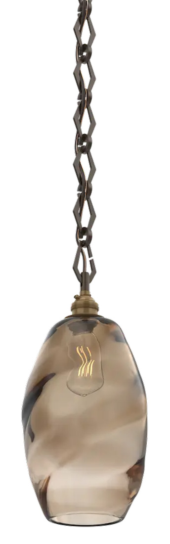 The Ellisse Diamond Chain Pendant brings both form and function to your interior space. The decorative, diamond link chain holds artisan blown optic glass that casts warm shadows of light across your room. Each Piece is a unique work of art. Sloped ceiling compatible to 45 degrees.
