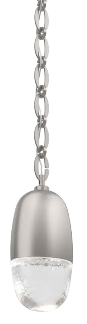 The Pebble Oval Chain Pendant brings a natural beauty, inspired by jewelry, to your interior space. The handcrafted oval link chain is complemented by a softly curved rondelle of artisan cast glass, creating an interesting conversation piece while casting warm shadows of light across your room. Each Piece is a unique work of art.