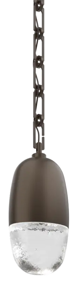 The Pebble Rectangular Chain Pendant brings a natural beauty, inspired by jewelry, to your interior space. The handcrafted rectangular link chain is complemented by a softly curved rondelle of artisan cast glass, creating an interesting conversation piece while casting warm shadows of light across your room. Each Piece is a unique work of art.