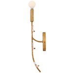 Feminine and romantic, the Aliso Wall Sconce's thin, delicate frame is adorned with dainty, clear, pressed glass leaves. A distressed brass finish makes a polished and luxurious statement in classic living spaces or modern dining rooms.