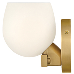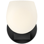 The Mae Wall Sconce's chic modern design complements soft, etched opal glass with a sleek finish. The contrast between the shade's rounded form and the frame's sleek silhouette creates a dynamic juxtaposition of softness and sharpness, and a balanced visual harmony.