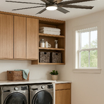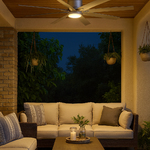 Create a major aesthetic statement with Vantage's modern industrial design featuring gently curved blades. Available in a variety of versatile finish options with matching blades, Vantage can be applied to a range of indoor and outdoor spaces. Equipped with integrated LED and DC motor technology to deliver excellent energy efficiency. Includes a light kit cover for non-light use, HIRO 6 speed control with reverse, and 6 inch downrod.