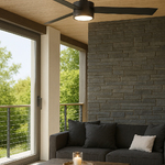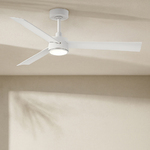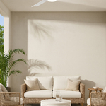 The Speck Smart Ceiling Fan's sleek design features three wood blades and classic finishes to complement both modern and traditional settings. Its versatile damp-rated construction can enhance interior or covered outdoor living spaces. Equipped with a 6-speed DC motor that is WiFi enabled and ready to connect right out of the box. White polycarbonate diffuser.