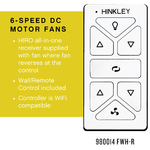 Speck includes a 6 inch downrod and HIRO all in one fan remote controls power, speed, direction, and lighting, if applicable (use as a wall control or portable remote). Can be operated by the HIRO control or WiFi compatible with the Hinkley App.