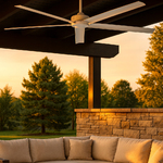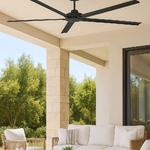 The Vento Smart Ceiling Fan's versatile wet-rated modern industrial design features a solid steel construction with sturdy composite blades.