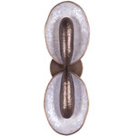 Inspired by oyster shells, the Spat wall sconce family features an uneven natural edge with an iridescent natural Capiz Shell interior. The driverless LED technology offers an indirect light that bounces off the shells to illuminate its surroundings. Offered in a Pearlized Antique Brass finish and can be hung both upside down and sideways.