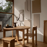 The Artisan Stool fuses Japanese minimalism with Nordic practicality. Designed with multifunctionality in mind, the stool can easily serve diverse functions, like as a nightstand or a seat at a kitchen table. The oak wood is finished in a clear lacquer to protect and enhance its qualities.
