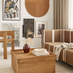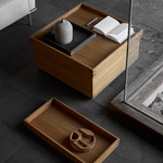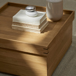Inspired by minimalist Asian design, the Japanese Square Tray Table is a a Scandinavian take on a sleek coffee table. The body is built of oiled oak with clean, straight lines and features internal storage for your favorite magazines or a warm blanket.
