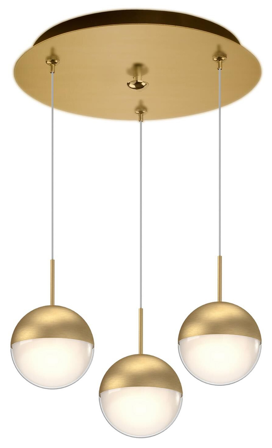 The Pluto Round Multi Light Pendant adds a timeless elegance to your interior space. Each sphere is divided at the equator, where a sleek metal frame meets a glass diffuser, casting soft, warm shadows throughout your room.