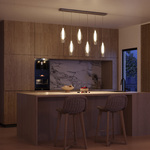The Victoria Slender Linear Multi Light Pendant adds a touch of understated elegance to your interior. Its sleek frame supports a series of slender pendants, each featuring a clear outer glass paired with a frosted inner layer. Together, they create a warm, inviting glow that casts soft, ambient shadows throughout your room.