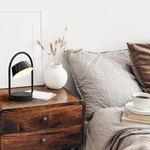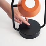 Playful yet practical, the Olo Ring Portable Table Lamp provides light wherever needed. Once charged, take this take this lamp and use it on a patio, end table, or bookshelf. The rotatable lamp shade features a hollow circle combined with a glare-free LED. Includes touch dimmer switch on base.