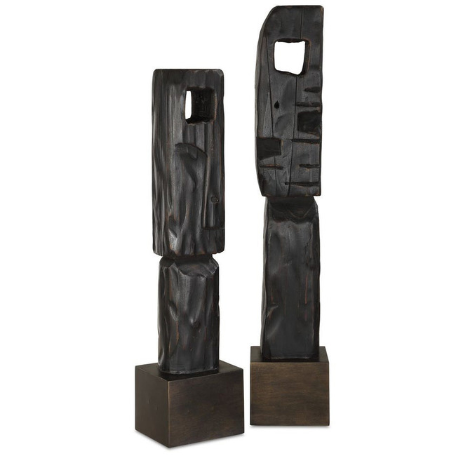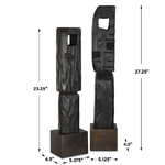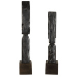 Named for cryptic messages, the Cipher Totems posses a sense of mystery and sophistication. Each abstract piece is handcrafted with aged black and brown tones and geometric cutouts. Place them solo or pair together for dramatic statement.