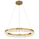 Add some sparkle with the glamorous and innovative Segovia Chandelier. Cut crystal blocks are set into a brass ring and illuminated from within for a dazzling glow. Perfect for an entryway, dining room, or even a bedroom.