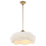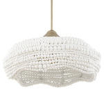 The Biddeford Pendant features laid-back coastal charm. The delicate scalloped shade is formed using a variety of sizes of intermingled matte white wood beads. A brushed matte gold finish gives an airy and inviting feeling that completes the piece.