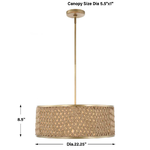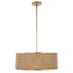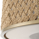 The Pinchot Pendant effortlessly infuses a classic style with coastal charm. Starting with a clean white fabric drum shade, natural rattan is wrapped around the outside in a woven crisscross pattern, creating an organic textured surface. Brushed matte gold finish adds an elevated touch.