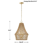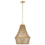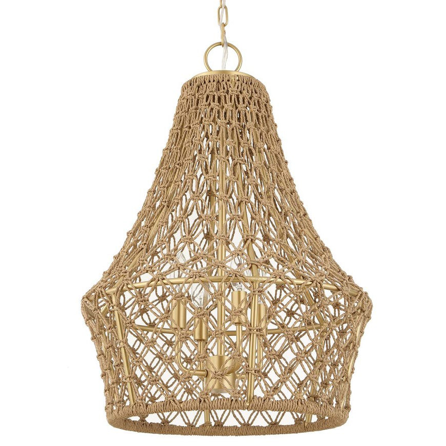Channeling a 1970s craft arts vibe, the Macrame Pendant features a timeless blend of bohemian and coastal charm. Natural beige rope is hand knotted in a repeating pattern to form the texture net shade. A brushed gold finish adds a classic touch. Perfect for a kitchen or dining room.