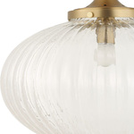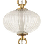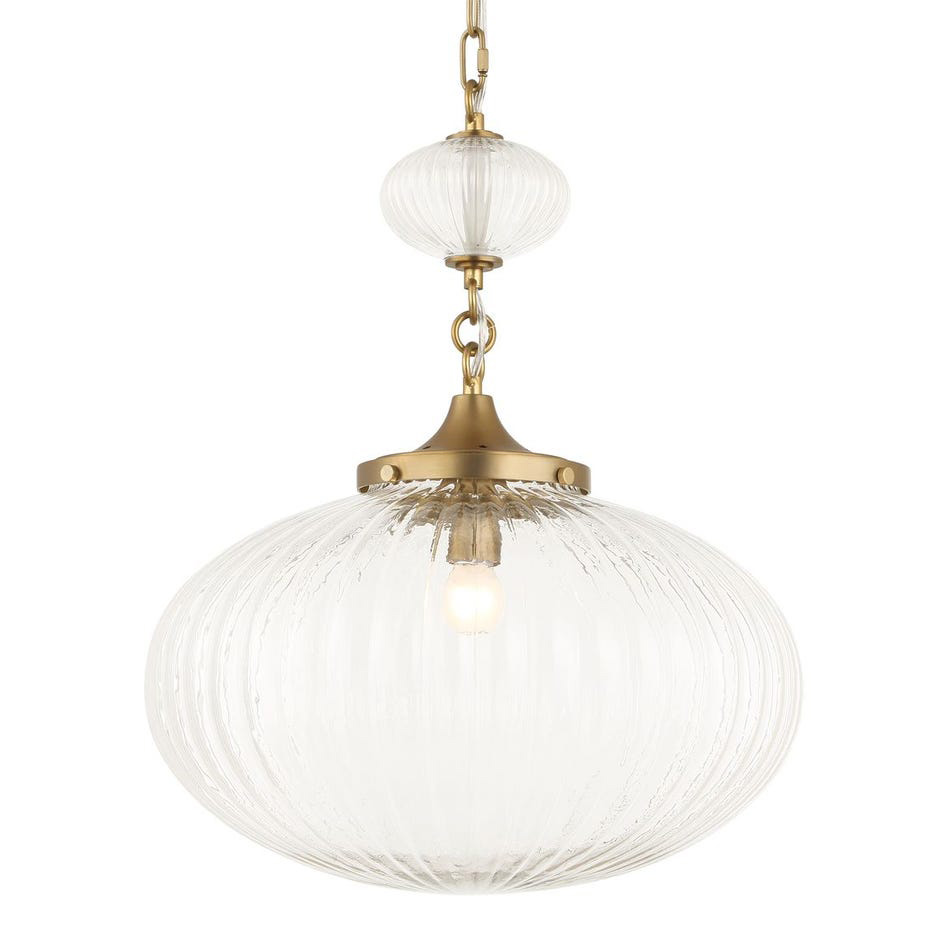 Infuse your home with retro charm with the Bellaire Pendant. The puffy melon glass shade features ribbing along the surface for added textural interest. A matte brushed gold finish on the decorative canopy and patterned chain provide the final timeless touch.