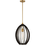 The Darby Pendant blends industrial and rustic elements to create a modern piece. A curved cage forms the open shade, displaying a decorative Edison bulb. Use as a solo statement piece or in groups for dramatic effect.