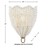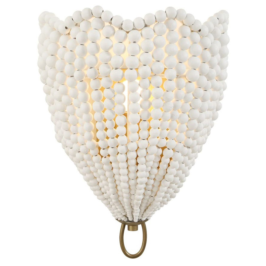 The Biddeford Wall Light features a laid-back coastal charm. The delicate scalloped shade is formed using a variety of sizes of intermingled matte white wood beads. A brushed matte gold finish gives an airy and inviting feeling that completes the piece.