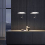 The Dione Pendant features a metal disc with 2 light sources, one that directs like downward and one that directs light upward, to provide both ambient and directed lighting. A glass disc above the metal disc can be raised or lowered along the cable, allowing for endlessly customizable configurations.