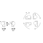 The Globose Wall Sconce emphasizes the visual contrast between the rigid metal structure and the soft shapes of the blown glass diffusers. The continuous orthogonal lines of the sconce's structure visually frame the glass globe in an intriguing perspective. The sconce can be installed vertically or horizontally. Available with smooth White glass or textured Crystal glass.