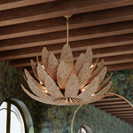 The Varanasi Chandelier takes the iconic artichoke light silhouette and remakes it with natural materials. Cascading tiers of leaves' curl inward, with each one made of hand-applied coco beads. A straight stem in Vintage Gold Leaf accompanies the neutral tones, while the beaded ceiling canopy creates a sense of cohesion. Note: Due to the one-of-a-kind nature of the medium, exact colors and patterns may vary slightly from the image shown. inch