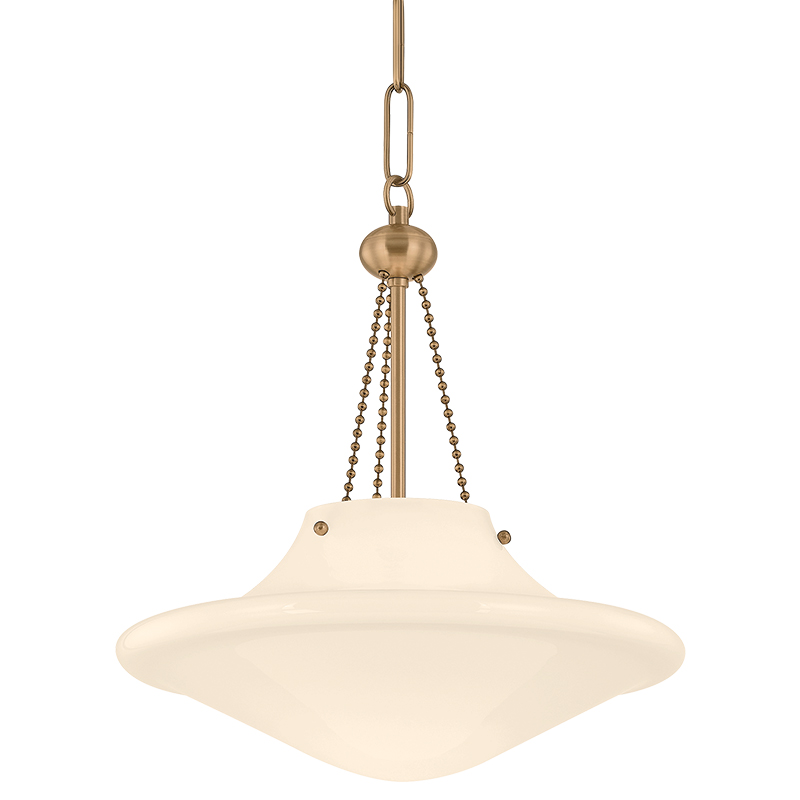 An ethereal pendant-lantern hybrid, the Era Pendant combines a sleek opal glass shade with charming vintage details to create a soft yet striking focal point. The large shade emits a warm, ambient glowideal for gathering spaces like dining rooms and kitchens. Decorative rivets and a retro ball chain add a touch of vintage glamour. Era brings timeless style with a hint of mid-century cool.