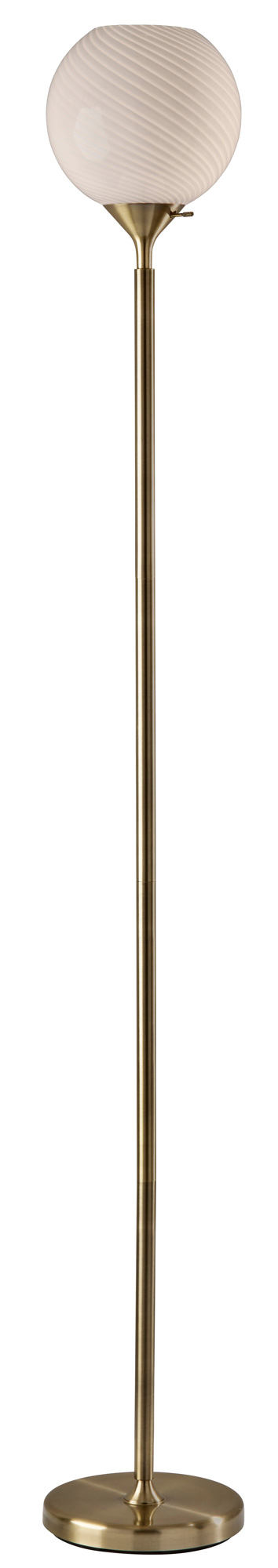 The Swirl Torchiere Floor Lamp brings artful elegance and soft illumination to your interior space. Featuring a globe-shaped shade crafted from swirled opal glass, casting a warm, diffused glow with a beautifully textured look to your room. The smooth stem adds a refined, vintage inspired touch that suits both modern and traditional interiors. Four way, High/Med/Low/Off rotary switch is located on the socket.