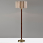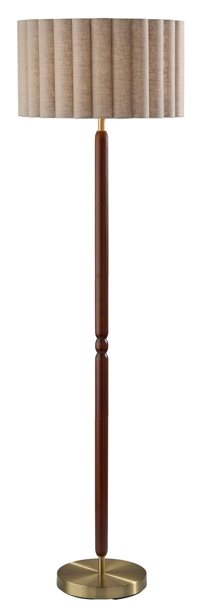 The Laine Floor Lamp brings a striking blend of midcentury modern design and functional elegance to your interior space. The warm walnut wood and antique brass metal base is complemented by a scalloped linen shade that adds soft, timeless texture and warm shadows across your room. Three-way switch is located on the lamp socket.
