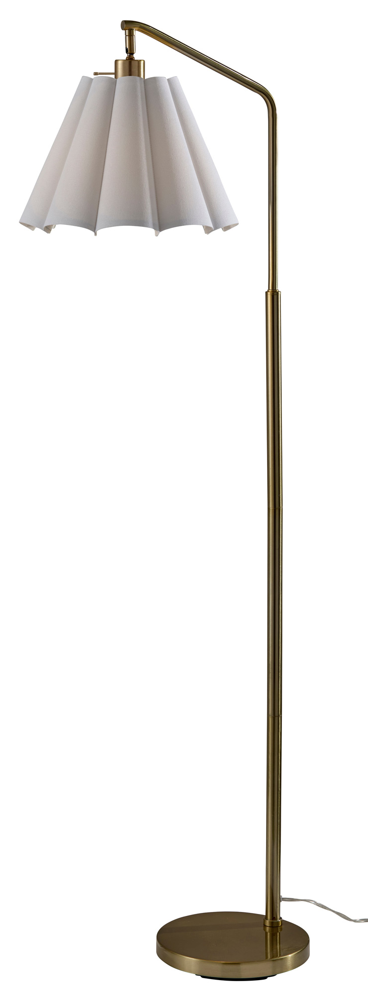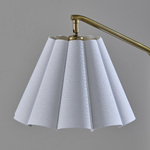 The Lyra Floor Lamp brings a refined blend of classic elegance and modern charm to your interior space. The timeless finish of the frame is topped with a beautifully scalloped, adjustable fabric shade, adding a touch of softness and sophistication with warm shadows across your room. An On/Off switch is located on the lamp socket.