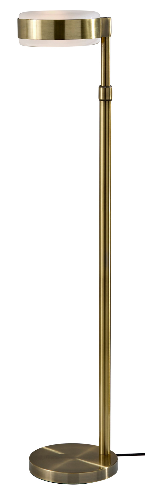 The Linis Floor Lamp brings a sleek and modern addition to your interior space. Featuring a timeless finish and a unique white glass shade, glossy on the outside and frosted on the inside, this lamp creates a soft and inviting glow. With an adjustable height ranging from 46 inches to 66 inches, it offers versatile functionality to fit any room of your home. An On/Off touch switch located on the top of the pole providing effortless control of light.