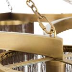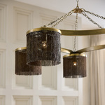 The Langston Chandelier brings a glamorous art deco look to your interior space. The ring frame holds circular shades, with cascading rows of delicate chains that cast warm shadows of light across your room.