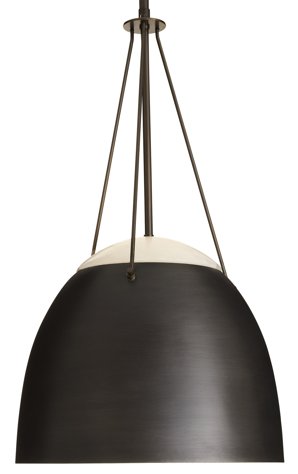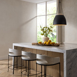 The Leda Pendant brings a bold, industrial look to your interior space. The steel dome has an Alabaster top creating a striking balance of materials, and casting warm shadows of light in your room.