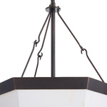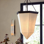 The Lillian Pendant brings the timeless look of the arts and crafts movement. The chattered frame, with hook details, holds a faux vellum shade that casts warm shadows of light across your room.