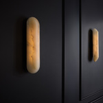 The London Wall Sconce brings a simple sophistication to your interior space. The long onyx diffuser casts warm shadows of light across your room. Mau be mounted horizontally or vertically.