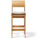 The Sonder Bar Chair 65 offers high comfort with its long backrest and softly curved seat. Characterized by a touch of Brutalism, the simple modern frame is crafted to withstand everyday wear and tear. Over time, the natural patina will subtly shift as the wood ages. The cushion is made of durable Kvadrat fabric, in a blend of wool and viscose.