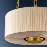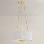 The Camby Pendant balances oversized proportions with tailored details to create a sophisticated statement pendant. Supported by a triple-chain system, the pleated ivory linen shade channels a classic sense of style. An Aged Brass oculus anchors the piece, adding a focal point from below. Camby pairs beautifully with many design schemes.