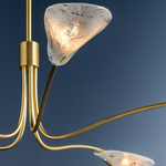 Inspired by the shape of calla lilies, the sprightly Tenafly Chandelier features piastre glass shades that bloom outward. A reeded central detail adds texture, referencing a string-bound floral bouquet. To complement the ethereal glass, the slender arms are elongated and curved.