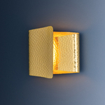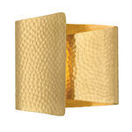 The poetic Dunnsville Wall Sconce is made from a single piece of hammered metal that curls inward to shade an LED light source. Gestural and rhythmic, this layered silhouette directs ambient light out of multiple sides. Finished in Aged Brass, Dunnsville makes a high-design statement on the wall. Can be mounted in several ways including horizontally or vertically.