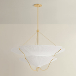 Drawing inspiration from the organic elegance of the Art Nouveau period, the Gerhard Chandelier reinterprets floral motifs with architectural clarity. Gracefully arched metalwork in a warm Aged Brass finish supports sheer ivory linen shades, crafted with a unique pleating technique that adds volume and dimension. Together, these elements form abstracted botanical shapes that feel both refined and expressive.