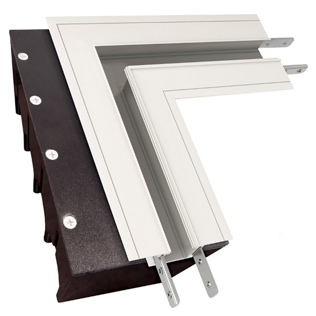 The TruLine 1A Single L Power Channel Connector includes a WiZ Pro CV Bridgebox in a 4-Gang Junction Box, Lens, Channel Joiners, Adjustable Mounting Bars, two 90 Power Connectors, as well as Left and Right Power Connectors. Allows 24VDC power to be fed from corners for 90 degree turns (with power) in Picture Frame installations either in one or both directions. LED Strip (not included) installs on the side of the channel to create continuous illumination on a wall or ceiling.