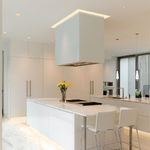 Verge Ceiling features an innovative design that recesses within 5/8 inch drywall without joist modification. Available in 1 foot increments (sold in 5 foot increments) up to 40 feet (2 Watt), 20 feet (5 Watt), and 12 feet (7 Watt) and is field-cuttable. The plaster-in aluminum extrusion features a 4 inch paintable backer plate and highlights ceiling perimeters while emitting smooth and continuous ambient illumination.