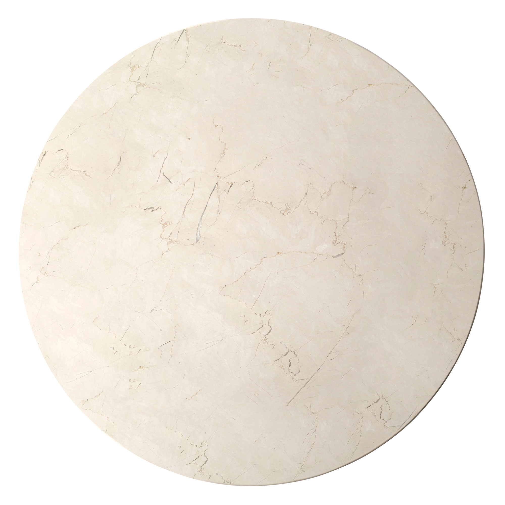 The Marble Tabletop can be added to the Androgyne Round Metal Side Table, sold separately. The tabletop features distinctive veining and overhangs on top of the base, creating a striking visual effect.
