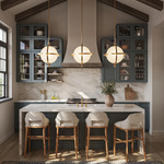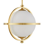 The Astral Pendant is inspired by celestial forms like Saturn and its rings. A large opaque glass globe at the center is orbited by two brass bands, one to hold it in place, and another adjustable one that turns around the center. Perfect for a kitchen, dining room, or anywhere you need a touch of modern elegance.
