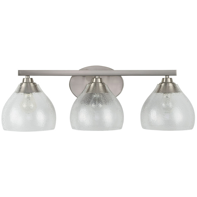Enhance your home's decor with the beauty of the Ariella Bathroom Vanity Light. With an eye-catching silhouette that invites onlookers, this sophisticated series features rustic textured glass and stylish, modern forms. This unique collection is sure to spark conversation. Ariella's beautiful hammered glass shades hang by gravitational tension on the conical caps. The hand-blown artisan glass plays with light, reflecting, refracting, and creating stunning shadows.