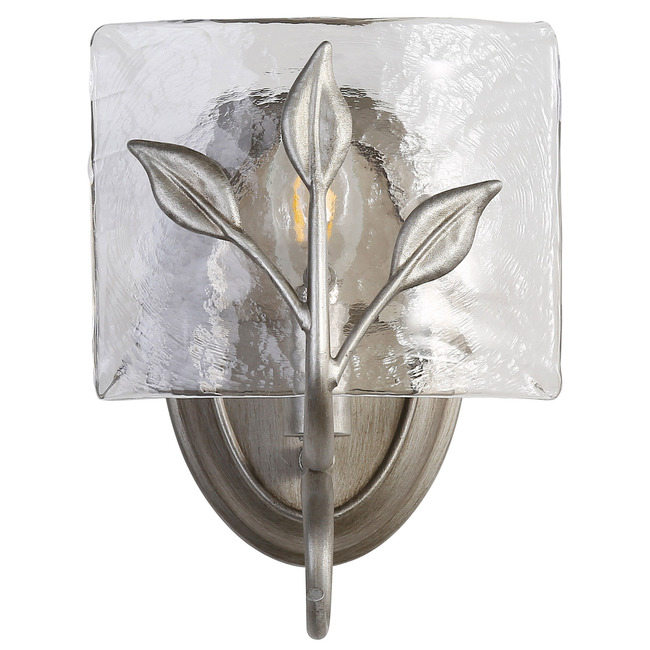 Tastefully convey your love of nature with the beautiful Calla Wall Sconce. Decorative elements like Hammered Water Glass and plant-like metal details take center stage in the transitional design.